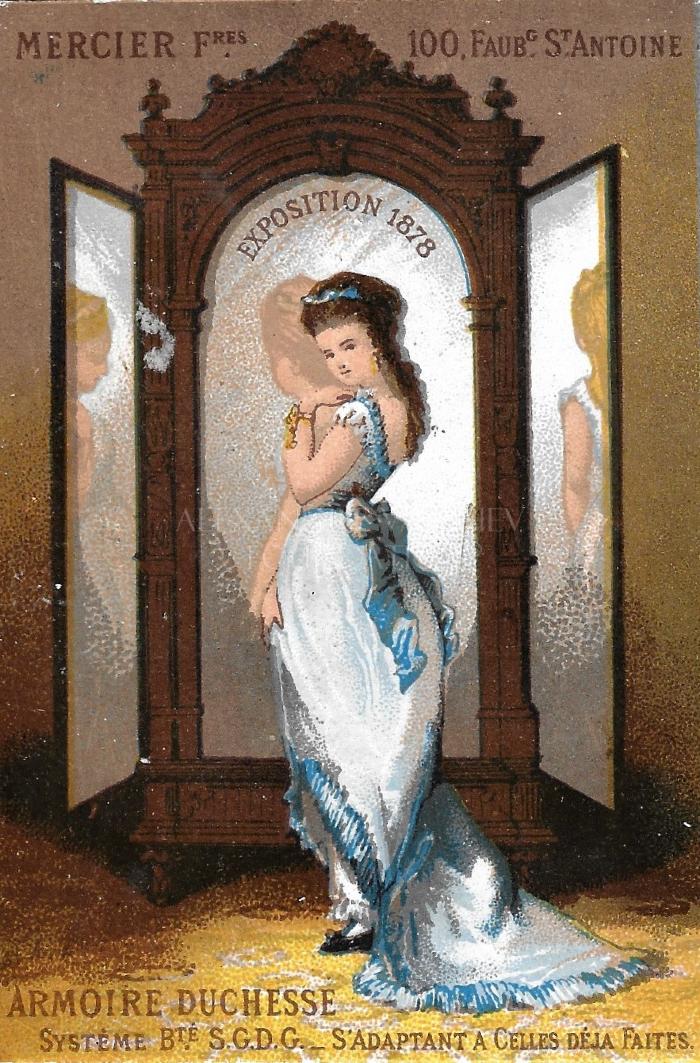 Claude MERCIER, a cabinetmaker born in Chenôve, in Cote d'Or, in 1802, created in 1828 a cabinet-making company which he set up at No. 31 rue du faubourg Saint Antoine, the Parisian artery of craftsmanship (especially cabinetmaking) from its medieval origins. After his marriage, in 1832, to Charlotte Héloise MOREAU (1811-1892), he moved to N ° 100, at the corner with rue Traversière. The couple will have their first son Paul Eugène, in 1833, then Claude Arthur in 1839 and Charles Léon in 1845. In 1856, the family business takes the name of "Mercier Père et Fils". In 1863, Paul Eugène took over the company under the name "Mercier Fils Aîné". The company begins to supply the imperial court of Napoleon III in particular. In 1867, she participated in the universal exhibitions in Paris and took the name of "Mercier Frères". Claude MERCIER died in 1880, his wife in 1891. The company is then still in the hands of the eldest, who after having married in 1860, Adèle Stéphanie LECHAUGUETTE, will have Georges Claude in 1861, Henri Charles Eloi in 1863, François Maurice , in 1868, Charles Marie in 1874, and two daughters Marie Heloise Claudine in 65 and Berthe Caroline in 1878. The success is growing, the company exhibits again at the exhibition of 1878 and that of 1900 with a small pavilion and an original advertisement since it prints a map of the attractions of the exhibition for the many tourists. Henri Charles Eloi MERCIER takes over the reins of the family house. The company is prosperous and Henri Charles, now Chevalier of the Legion of Honor, will house his family in the 16th arrondissement of Paris, at 51 avenue Bugeaud. In 1912, the company joined forces with Francisque Chaleyssin's company in Lyon. The following year they set up a joinery factory in Lyon under the name "Mercier - Chaleyssin". In 1914, the company opened a branch in Buenos Aire, Argentina. In 1920, the company opened a store "Le Palais de Marbre" at 77 avenue des Champs-Élysées. Then in 1927, another branch in New York, at 232-236 E. 59th Street. On the occasion of the Paris Universal Exhibition of 1937, Mercier Frères offers a "Parachute" attraction at the aeronautical pavilion. Specializing in stylish furniture, it will follow all the trends of fashion and will supply many European and Eastern courts, in particular the imperial family of Iran. The company closed its doors permanently in 1985.