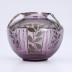 Vase in purple colored glass and frosted silver painted vegetal decorations on matte background, with removable silver metal ring decoration on the top with openwork border in Art Deco style consisting of a collar and 3 legs.