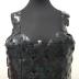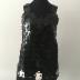 Black and white vinyl square puzzle-piece panel dress, model called "K dress - The multidress", made of mostly black puzzles with some white inserts on the bottom. Such type of dress had been sold in a kit in cylindrical box with additional puzzle pieces, with instruction leaflet demonstrating the various imaginative creations which can be made.