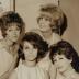 Photograph depicting four of eight models at the Armenonville pavilion in the Bois de Boulogne, selected to represent French ready-to-wear at the French exhibition in Moscow on August 15, 1961. The hairstyles were created by Jacques DESSANGE, the only French hairdresser to make the trip to Moscow and to create hairstyles for the models to match the gowns they would present.