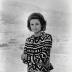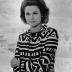 Photograph portrait of Grace KELLY, an American film actress, Princess of Monaco by marrying Prince Rainier III. The woman is wearing a suit, consisting of a jacket and a skirt with the same geometric pattern. On the background, there is a view on Monte Carlo shore.