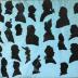 Cut Paper Silhouette Gallery represented 23 black paper silhouettes cut out and stick on a blue paper background