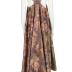 A brocaded silk Russian traditional dress, in the cannelé lilac silk ground woven with large floral repeats in peach and ivory silks, silver threads, with vertical gold braid panels to front edged in later pink braid and with domed pewter buttons, lined in roller and block-printed cottons, the bodice area lining in plain calico.