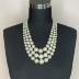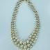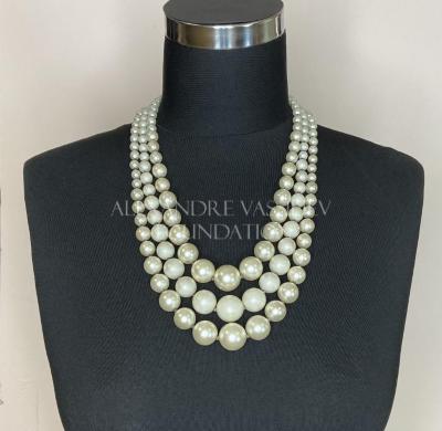 Three line pearl necklace made of small grey and nacreous plastic beads (big in the centre and decreases to the back). The necklace closes with a push in clasp, and the buckle embellished with plastic pearl on the top.