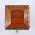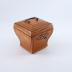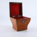Sarcofage-shaped wooden scent box decorated on all sides with a rectilinear pattern made with cut steel nails. The lock is drilled in a small mother-of-pearl plate which can be closed with a key typical of Madame Irlande's fancy shop and decorated around it with an arabesque motif. The (empty) interior is lined with red velvet and once contained four porcelain or crystal vials.