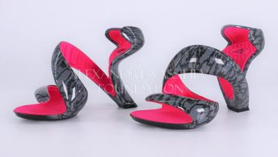 Julian HAKES, a London architect and bridge builder, reflected on the issue of a heeled shoe that could conform to the shape of the foot. For him, since all the weight of the body is distributed over the toes and the heel and not over the entire shoe, the soles should not have to be in one piece. So he thought about using his talent as an architect and created the Mojito shoe: a shoe with a crazy and spectacular shape and in one piece wrapped around the foot, supporting the heel and toes without a platform.