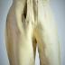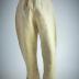Men's knee-breeches in cream chamois skin leather with small bridge, completed with chiseled brass and mother of pearl buttons. Small rectangular brass buckles fasten the legs on the knee line. Such type of white breeches could be worn on a court hunting.