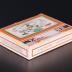Egyptian cigarette box, model "The Khedive", rectangular shape and decorated on the lid by a small annotation between illustrations representing a portrait of Muhammad Tawfik Pasha, Khedive of Egypt from 1879 to 1892, a sphinx and the pyramids of Giza. Under the lid is a representation of the Laurens cigarette factory surrounded by the coats of arms of the states or kingdoms supplied by the company.