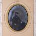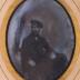 Ambrotype in a silver paper frame depicting a bearded man sitting on a chair and leaning on a table wearing a 3 pieces suit and wearing a service cap.