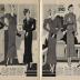 Advertising booklet of haute couture models of clothes for women of the French brand Véronique de Paris. The book has 28 pages, including front and back, with a colourful illustration by Félix AGOSTINI on the front, representing a woman dressed according to the mid-19th century fashions in a blue dress with wide and long white sleeves, decorated with pink dotted pattern, and pink hearts on black apron. Inside, the catalog shows different models of everyday and evening dresses, spring-autumn coats, fur jackets, hats, and two wedding gowns on the center double page.