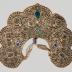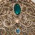 Russian traditional headdress, decorated with pearls, rhinestones, sequins, and green emerald imitating glass paste stones.
