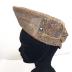 Traditional Russian hat in silk, entirely embellished with golden thread embroideries and multicolour pearls.