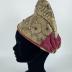 Round folk hat in silk with short top and wide brom, entirely embellished with golden thread embroideries and beads with red silk border.