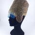 Kokoshnik, with two circles covering the ears, in silk entirely embellished with golden thread embroideries, and a short white and blue beaded net border.