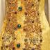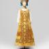 Yellow velvet Russian folk sarafan embellished with different shape multicolour glass beads, sequins and rhinestones.