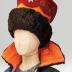 Boyar's costume based on a sketch by Natalia GONCHAROVA for Serge DIAGHILEV's ballet "The Golden Cockerel" in 1914. A long wool coat, decorated with scrolling green velvet and yellow silk satin appliques bordered in metallic gold cord, black fur trim, orange wool wide collar. Comes with a high black woolen hat. The costume was worn by CASTANO.