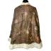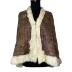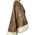 Powdery purple silk brocade pelerine with orange, green and golden floral and vegetal motif embroideries, trimmed with white ermine fur.
