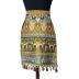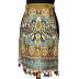 Decorative apronĀ a part of the theatrical costume in oriental style. GarmentĀ in multicolour jacquard with golden galon ribbon at the top and blue, yellow, red silk tassels on the bottom.