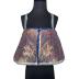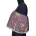 Female folklore garment named Epanechka in violet silk jacquard with multicolour floral embroideries and with hand printed cotton lining. Bodice with the addition of padding and tubular pleats at the back, trimmed with light blue silk ribbons on the bottom. Ex collection of Yteb.