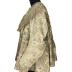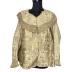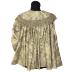 Russian folk women's cape named dushagreya in flowered ivory and golden brocade, trimmed with silk tassel blended with metal threads, with cotton print lining.