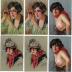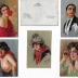 Lot of 10 postcards, in original paper packaging, representing portraits of women by Yves DIEY. Each female figure is duplicated. The first one is called "La Pierreuse" and represents a woman with a naked breast. The second is called "La Chaloupeuse" and shows a woman wearing a beret and a red scarf, with a cigarette on her lips. The third is called "Le Rimels", showing a woman doing her eyelashes in a dressing gown. "La garçonne" depicts a woman dressed in a male suit smoking. A final photograph entitled "The Gypsy" shows a smiling woman in a red dress biting a flower.