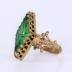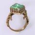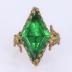 Stage costume ring in brass with openwork scrolled motifs on the side, growing from the fleur de lys (heraldic lilies), embellished in the center with a large emerald stone of rhombus shape. The ring was worn by Sarah BERNHARDT in a six acts play "L'Aiglon" by Edmond ROSTAND, based on the life of Napoleon II, who was the son of Emperor Napoleon I and his second wife, Empress Marie Louise.