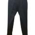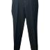 Black woolen trousers with two pockets on the sides, one small on the waistline at the front and two more at the back. The pants have buttons by way of a fastening, and a black satin stripe on each trouser leg side.