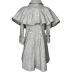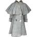 Grey woolen child coat, double-breasted with big round buttons and with short pelerine made of the same fabric as the main gown.