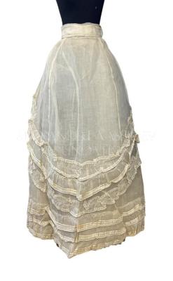 Summer skirt in ivory organdy embellished with flounces on the skirt bottom made of the same fabric as the main body.