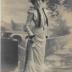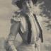 Paper photograph of a Parisian model of Maison Lesne, destined for a German magazine, with a printed on tracing paper explanatory text in German. The photograph shows a young woman dressed in a so called "Rome costume", consisting of white bodice and the skirt, with a black fox trimming on the bottom, the cuffs of the sleeve and the small bolero revealing a chiffon chemiset. The old Irish lace decorates puffs of the elbows.The rest of the decoration of the suit consists of bias made of white satin, tapering at the front and widening towards the back, with thick white silk passementerie adorning the skirt. The same biases are repeated at the waist at the collar, as a shoulder piece and loose epaulets, as well as at the belt and the brim of the bolero. In addition, a large flat hat, made of genuine Venetian lace, completes the look. The lady is wearing a set of pearl jewellery, consisting of a choker necklace and a pair of round earrings, and a pocket watch hangs on the belt attached with two chains to the lapels of the jacket.