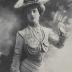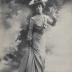Paper photograph of a Parisian model of Maison Miremont, destined for a German and British magazines, with a printed on tracing paper explanatory text in German, French and English. The photograph shows a young woman dressed in a street gown in dove-colored cloth. The skirt shows a broad stitched box pleat at front and back, which opens out half way down. Three flat folds of the cloth fit close around the hips, finished at the under edge with stitching and a tiny fold of black silk satin. The bodice is jacket shape, a trifle longer in front, the lower half plain, the upper laid in tucks, and fitting out over the sleeves like a shoulder cap. Folds of the plain cloth form an inner revers over the vest and two folds fall out over the bust. All the edges of the jacket are finished with the tiny fold of black satin that trims the folds on the hips. The waist is further trimmed with a passementerie in coral and jet, the narrow vest, collar and sleeve cuffs are trimmed with rich Russian embroidery. The loose coat sleeve "a l'engageante" is trimmed with the coral and jet of the bodice, and has a turned-back fold edged with the satin. A stitched pattern trims the under edge of the skirt. The look is completed with a hat with silk flowers, and the lady is wearing a short pearl necklace with matching earrings, and an oval medallion on a thin chain.