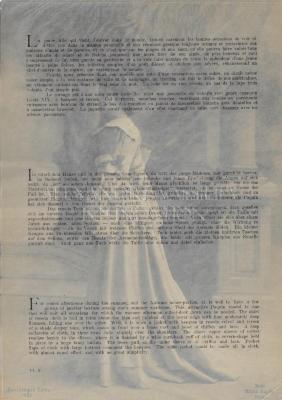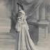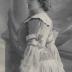 Paper photograph of a Parisian model of Maison Paquin, destined for a German and British magazines, with a printed on tracing paper explanatory text in German, French and English. The photograph shows a young woman dressed in a summer outside gown, with the skirt of reseda cloth, laid in folds about the hips and finished at the lower edge with four moderately deep flounces, falling one over the other. With it is worn a jacket with basques in reseda velvet and revers of a shade deeper tone, which opens in front over a loose vest and jabot of chiffon and lace. A deep collarette of cloth, in three rows fails slightly over the shoulders. The short upper sleeve of velvet reaches barely to the elbows, where it is finished by a wide turn-back cuff of cloth, in revers-shape held in place by a large fancy button. The loose pull of the under sleeve is of chiffon and lace. Pocket flaps of cloth with large buttons ornament the basques.