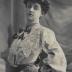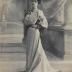 Paper photograph of a Parisian model of Maison Vincent, destined for a German and British magazines, with a printed on tracing paper explanatory text in German, French and English. The photograph shows a young woman dressed in a delicate rose broadcloth dress, lined with deep red taffeta, which is seen in the folds thrown up by the flaring cut of the skirt. Broad cream lace in bands of insertion is laid on down the front of the skirt, and runs around it twice just below the knees. A broad band of the lace forms the collar and the front fold of the loose bodice, and a wide pointed shoulder cape of similar lace completes the trimming. On the lace front fold are two pairs of black satin bows with pearl clasps, and the broad soft girdle with its bow and hanging ends at the back, is also of black satin. The sleeve has a wide soft puff of the cloth, falling from the shoulder to the top of the tight lace undersleeve. A band of velvet just above the edge of the lace completes this undersleeve.