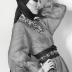 Paper photograph depicting a woman wearing a House of Dior creation consisting of a long summer dress, in semi transparent fabric with long and loose sleeves, and large flower pattern on the cuffs, repeating on the bottom of the skirt. The waistline is accentuated with a large dark satin belt with openwork metal belt over it, made of six petal flowers. The model is wearing a long scarf on her head, and a jewellery parure with a necklace and a bracelet in ethnic style, made of multiple metal coins, beads, chains and balls pending in chunky style. The look is completed with a pair of sandals on short heels made of metallic leather.