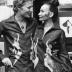 Fashion paper photograph representing models Ingo and Simone wearing ADAM and EVE - unisex shirts, hand screen printed on pure silk with designs created by famous artist and designer Erté in his 79th year for TREND brand at Simpsons of Piccadilly. The shirts were limited edition exclusive to Simpsons in the United Kingdom, and had been produced by Jasper and Company. The man and the woman on the photo are standing on the background of an exhibition of 120 original drawings and lithographs, covering the work of Erté from 1915-1969, in the window display of TREND, the menswear boutique of the famous Piccadilly store.