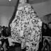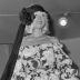 Paper photograph depicting a woman, wearing a House of Jacques Esterel creation for the spring-summer 1974 collection. The lady is modeling an evening dress with trousersĀ in surseaker cashmere, boat neck descending low on the shoulders, three-quarter length puffy sleeves. The look is completed with a pair of shoes and a long scarf tied in a headband with a large flower on the side of the forehead.