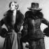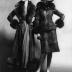 Paper photograph depicting two women, wearing House of Givenchy creations for the winter 1973 - 1974 collection in astrakhan from South West Africa. The lady on the left, models a copper broadtail evening coat, large matching fox collar trimming the back of the garment and the sleeves. The woman on the right, is wearing an elegant suit in swakara, burnt orange shade of brown, matching hat, brown fox collar and cuffs.