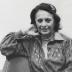 Paper photograph portrait of Princess Irene GALITZINE (1916 – 2006), a Russian-Georgian fashion designer. She is pictured sitting in an armchair on the front in a silk blouse with polka dots, with a woman on the back modeling one of her soft, comfortable, made-in-Italy silk dresses with a matching light jacket.