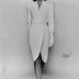 Paper photograph depicting a woman, wearing a House of Guy Laroche creation for the spring-summer 1979 haute couture collection. The lady is modeling a coat-dress in white wool, crossed and belted on the waistline with a thin matching belt. Shoulder yokes are giving a large built with "petal" hem. Yellow straw bucket hat completes the look.
