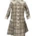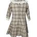 Tartan cotton boy's dress in ivory and brown colors with round collar and round button fastening at the front. Gown trimmed with cotton lace ribbons.
