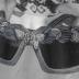 Paper photograph depicting a woman wearing accessories by Cannessa of Rome - black and white straw cap, with stylized handles trimmed with red berries, sunglasses decorated with rasberries and strawberries. The woman is also wearing a top with an ethnic embroidery pattern around the neckline. The photograph has being enhanced by being overpainted with acrylic.