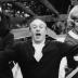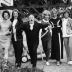 Paper photograph depicting Parisian fashion designer Jacques ESTEREL at "INTERSTOFF", the international trade fair for clothing textiles, in Frankfurt 1969. The designer is surrounded by models wearing his suggestive collection in the style "Negligé Snob" from German jersey. The jersey was made by manufacturer Max Boese.