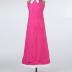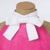 Long sleeveless slightly trapeze dress in pink colour light wool lined with white stripe on the bottom and on the collar, forming a bow.