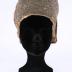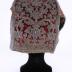Kokoshnik headdress lined with a floral print silk on hard interfacing base cover with a red velvet fabric entirely embroidered with golden sequins, rhinestones and grey and gold threads representing stylized foliage.
