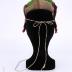 Kokoshnik style headdress covered with purple velvet fabric lined with red and green cotton cloth, decorated with sewned silvered buttons and golden sequins on its frame. A golden threads embroidery takes place in the center of the cap, two woolen tassels are arranged in the top corners and braid strings are attached to the sides to clamp the headdress.