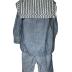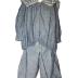 Boy's sailor blue cotton suit consists of a wide jacket with a sailor-style striped collar (in blue and white color), and loose pants gathered at the bottom.