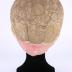 Kokoshnik hat with a circular shape, embroidered with golden threads and silk forming flower motifs, with red stripes on the back. The inside is made of linen.
