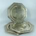 Three eight-angle shape plates set of silvered metal.
