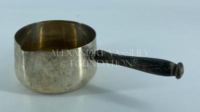 Silvered metal ladle gilded inside with wooden handle.