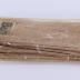 Mottled beige and light brown wool men's socks, wrapped with a piece of cardboard in a plastic pouch. A tag with the brand on it is sewn to the socks.